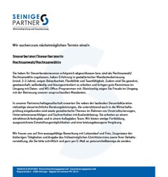 Bei Seinige & Partner legen wir viel Wert darauf, dass unsere Mitarbeiter ihre Fähigkeiten optimal entfalten und ausbauen können. Denn wir wissen, wie wichtig unser Team für den beständigen Erfolg unseres Unternehmens ist.